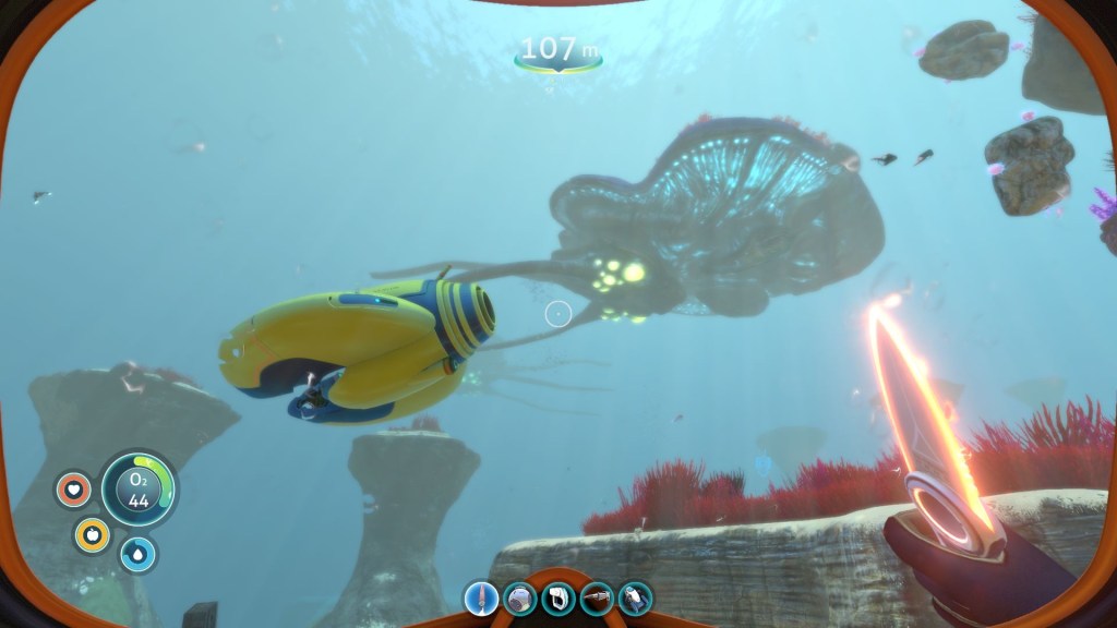 Скорее всего это будет мой первый полу-негативный обзор, поскольку в Subnautica есть несколько неприятнейших минусов для игры на PS4. Итак, сначала о хорошем, это очень интересная игра, в которой помимо выживания вы можете построить свою базу, исследовать пещеры и тд. Также в этой игре есть некий сюжет, который заключается в том что мы попали на неизвестную планету, с названием GJ-1214-B, и там мы должны помогать пришельцам перенестись на другую планету что-бы мы могли спокойно улететь на Землю. Теперь я хочу упомянуть один очень неприятный минус, это производительность, хоть графика в этой игре не так идеальна, но 30 ФПС, с учётом того что они не очень стабильные и в некоторых локациях ФПС спускается до 15 или 20. Также есть проблема с долгими загрузками и автосохранением, поскольку при автосохранении игра может зависнуть на секунд 5-7. Эта игра прекрасная и интересная, но вам я бы порекомендовал пройти на ПК.